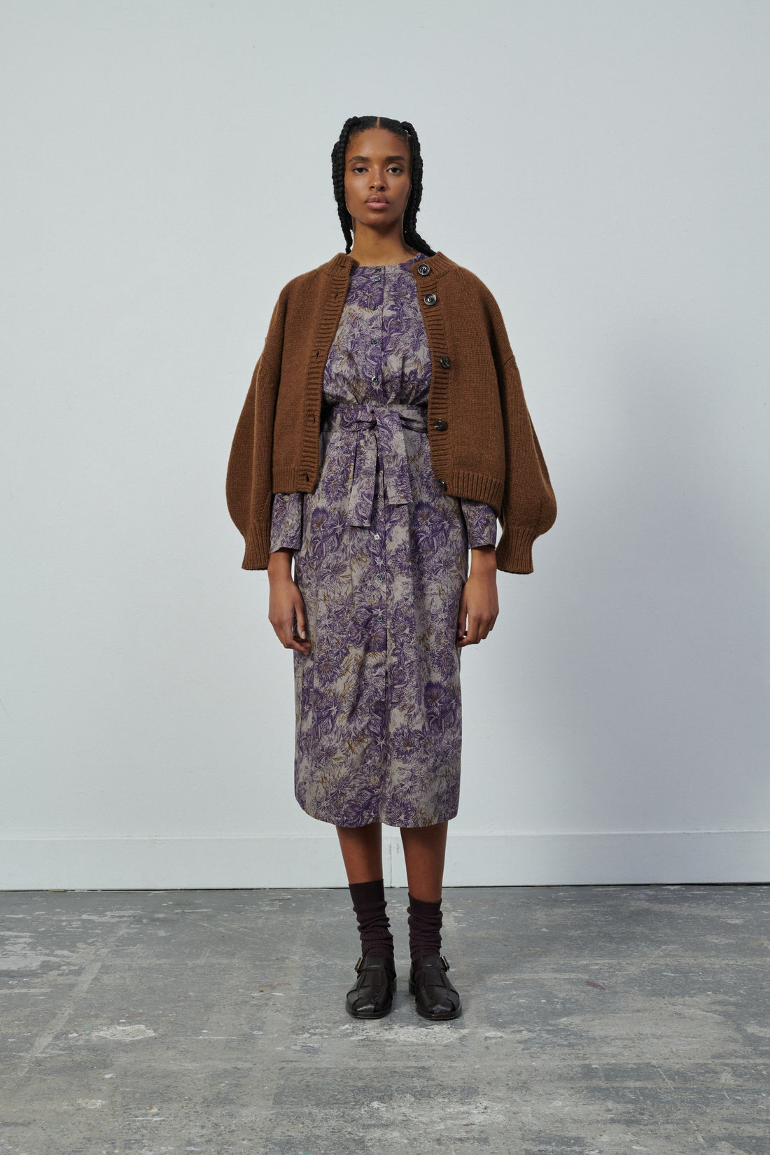 Printed cotton poplin dress chestnut/purple